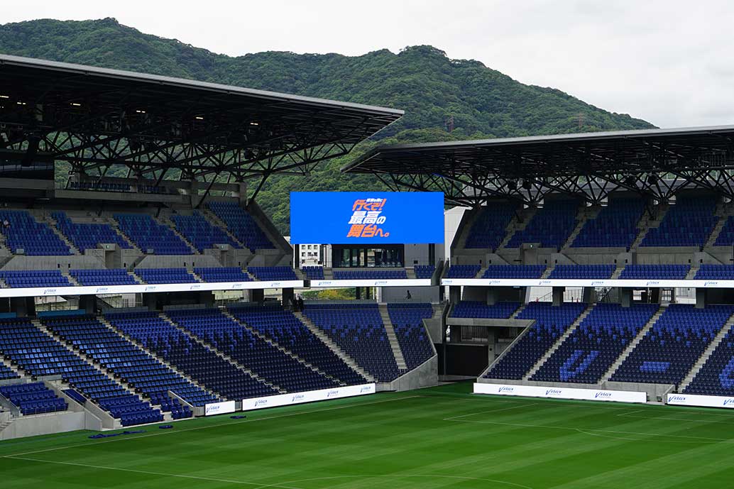Peace STADIUM connected by SoftBnk様へ2面の大型ビジョンとスタジアムをほぼ全周するリボンビジョンを設置させていただきました。